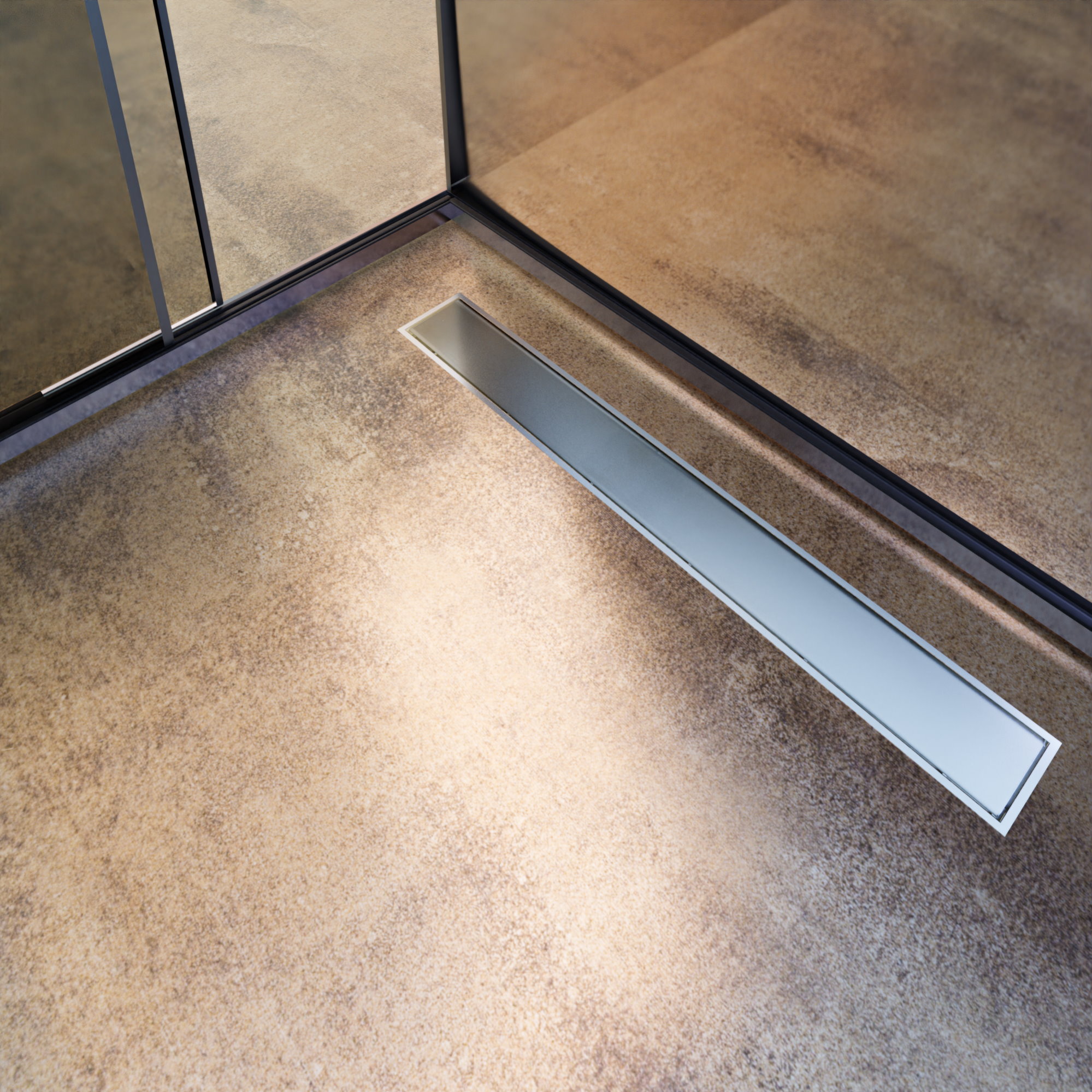 После заливки корпуса линейного трапа стяжкой, в корпус линейного трапа вставляется запахозапирающее устройство (в зависимости от комплектации), и декоративная решетка.