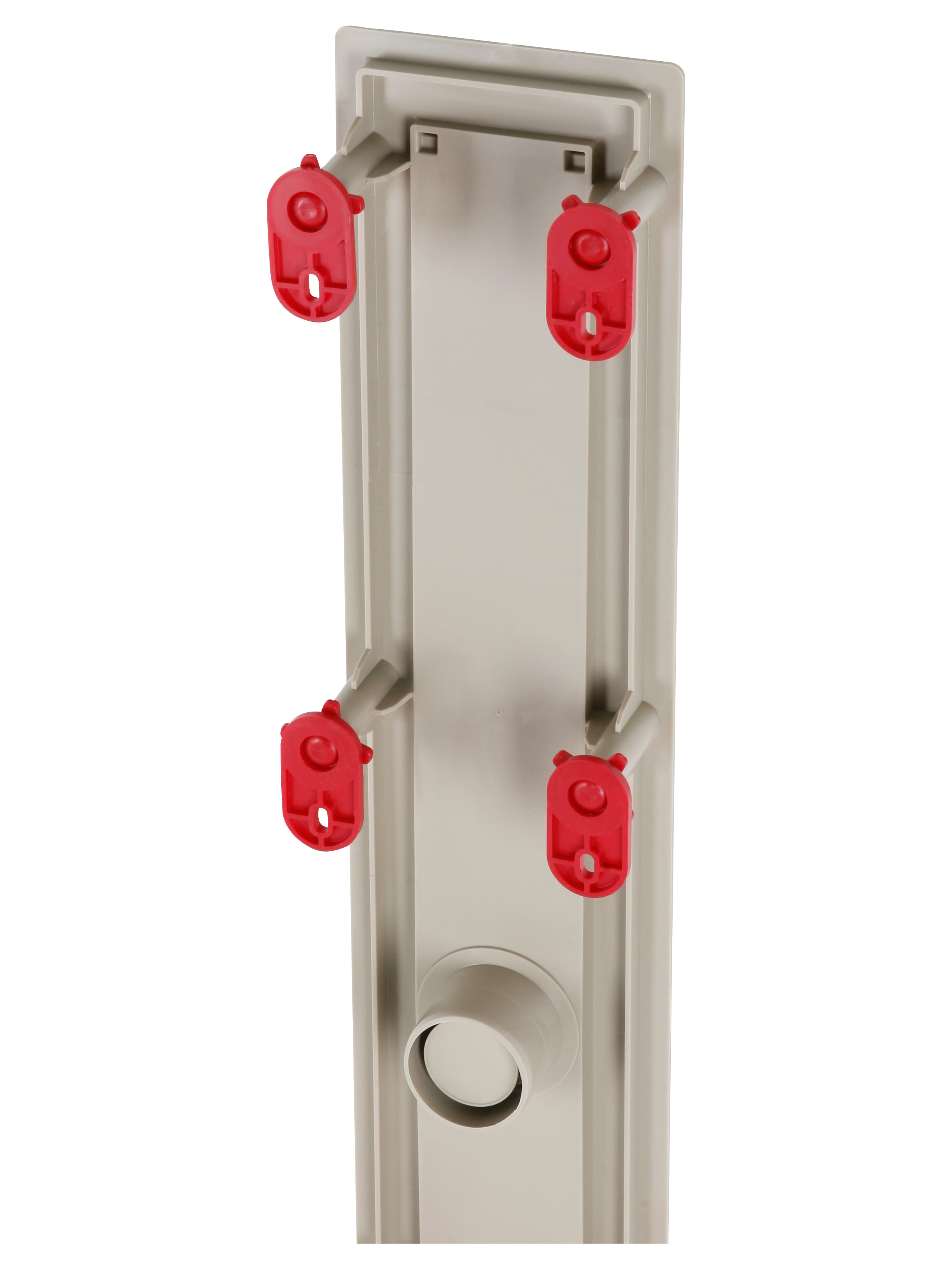 Корпус трапа с установленной монтажной заглушкой устанавливается на выбранное место. Высота корпуса регулируется от 74 до 116 мм, что позволяет определить высоту трапа и создать уклон не менее 2% к нему.
